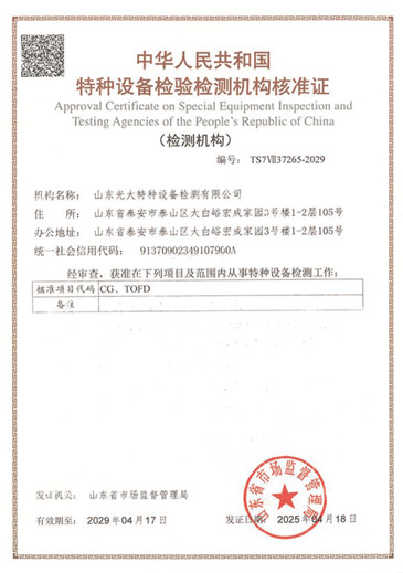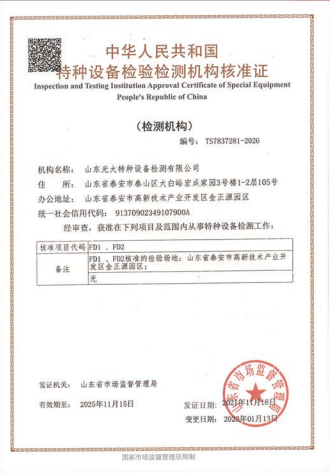【特種設(shè)備檢驗(yàn)資質(zhì)和檢驗(yàn)范圍】 RD2 定期檢驗(yàn):第一、二、三類(lèi)固定式壓力容器(不含超高壓容器,大型高壓者器、球形儲(chǔ)罐) RD3定期檢驗(yàn):第一、二類(lèi)固定式壓力齊器(不含球形儲(chǔ)罐) DD2定期檢驗(yàn):公用管道 DD3定用檢:工業(yè)管道 QD2 定期檢驗(yàn):塔式起重機(jī)、流動(dòng)式起重機(jī),門(mén)座式起重機(jī),升降機(jī),纜索式起重機(jī)、梔桿式起重機(jī),額定起重量小于 10T(不含10T)的橋式起看機(jī)和門(mén)式起重機(jī) QD3定期檢驗(yàn):流動(dòng)式起重機(jī),塔式起重機(jī),升降機(jī) ND1定期檢驗(yàn):場(chǎng)(廠(chǎng))內(nèi)專(zhuān)用機(jī)動(dòng)車(chē)輛 ...